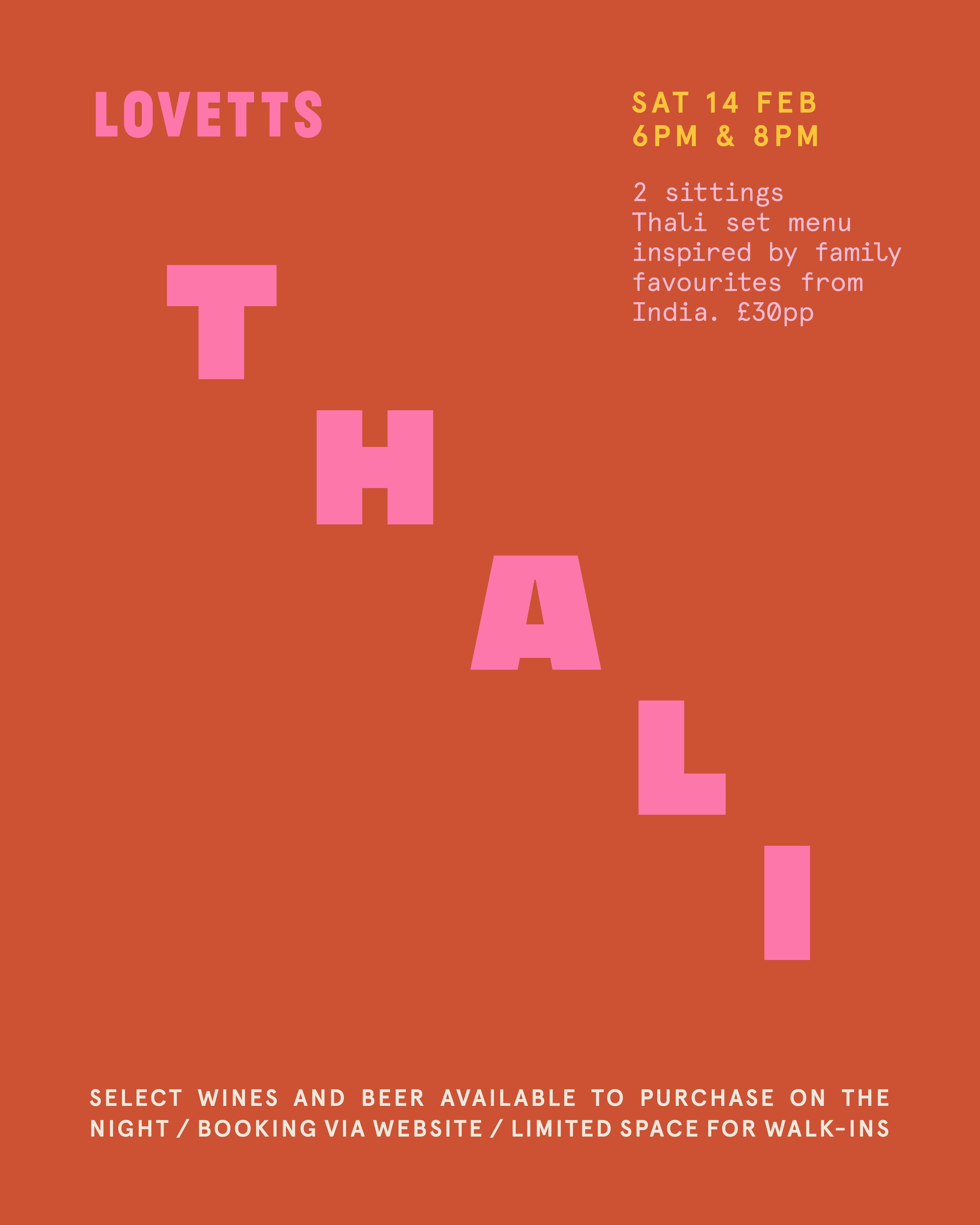 Join us on Saturday 14 February for THALI – a set menu featuring some of our favourite dishes, inspired by our roots in India. Select wines and beer will be available to purchase on the night. 2 sittings at 6pm & 8pm. £30pp. Booking advised. Tickets available below.